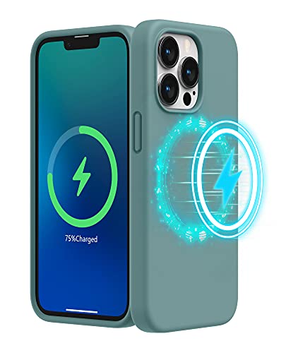 SURPHY Cover Magnetico Silicone Compatibile con iPhone 13 pro 6.1", Custodia per iPhone 13 pro Antiurto Protettiva Case con Fodera in Microfibra, Compatibile con MagSafe Accessori, Verde Cactus