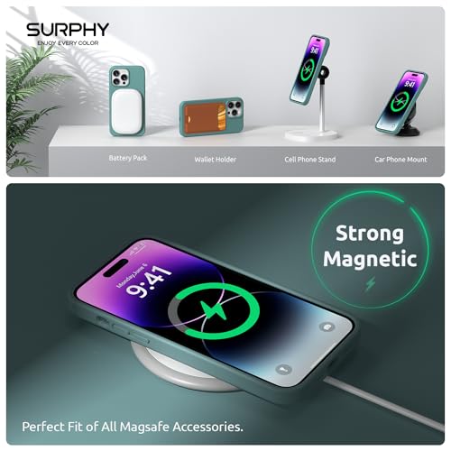 SURPHY [4 in 1 Magnetico Silicone Cover per iPhone 14 Pro 6.1" 2022 Custodia, Compatibile con MagSafe Accessori, con Lens Protector and 2 Protezioni Dello Schermo, Verde cactus