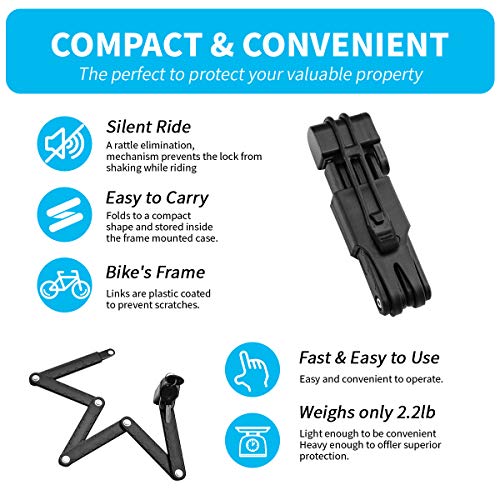 Surplex Lucchetto Pieghevole per Bicicletta, Portabile Catena Compatta Snodabile Antifurto Portatile in Lega di Acciaio con 2 Chiavi e Supporto Bloccabile per Motorrad Bici all' Aperto - Nero