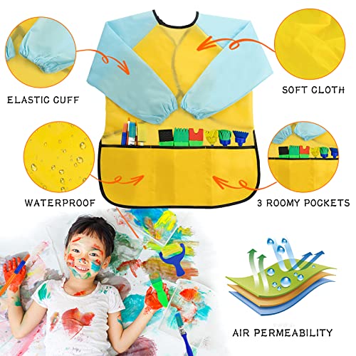 Riutilizzabile: tutti gli strumenti di pittura sono lavabili per usi ripetuti, facili da asciugare e da pulire. Con i Kids Art Smock, una copertura comoda e buona, la dose non macchia gli indumenti per bambini, ha delle tasche che sono ideali per i bambini per conservare vernici, pennelli, carta qualsiasi cosa vogliano lì dentro.