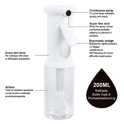 SURPN Flaconi spray per capelli da 200 ml, nebulizzatore per piante fini, bottiglia spray fine continua, per acconciare capelli, piante, pulizia, nebulizzazione e cura della pelle, trasparente