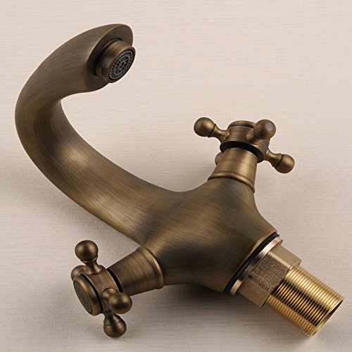 Sursy Rubinetto di cucina, rubinetteria in ottone, foro singolo freddo-caldo doppia impugnatura rubinetto, bagno rubinetto miscelatore vasca