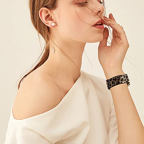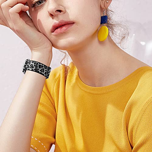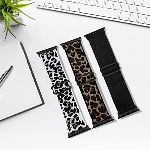 Surundo Cinturino Elastico Compatibile con Apple Watch 44mm 45mm 42mm Per Uomini Donne, Cinturini Elastici In Nylon per iWatch Serie Se 7 6 5 4 3 2 1, Nero/Bianco Leopardo/Giallo Leopardo