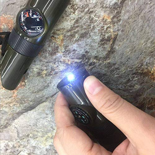 QYHT 7 in 1 Mini Survival Kit Camping Survival Whistle con Bussola Termometro Torcia Magnifier Tools Outdoor Hiking, Whistle Survival