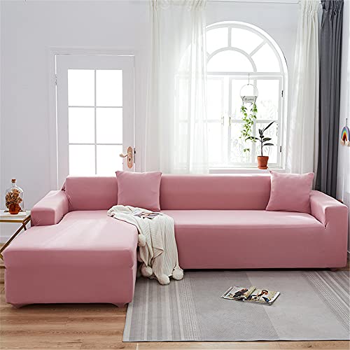 Surwin Copridivano Elasticizzato 1 2 3 4 5 Posti, Moda Tinta unita Elastico Universale Copridivani con Braccioli Fodera per Divano Antiscivolo Sofa Mobili Protettore (3 posti - 190-230cm,rosa)