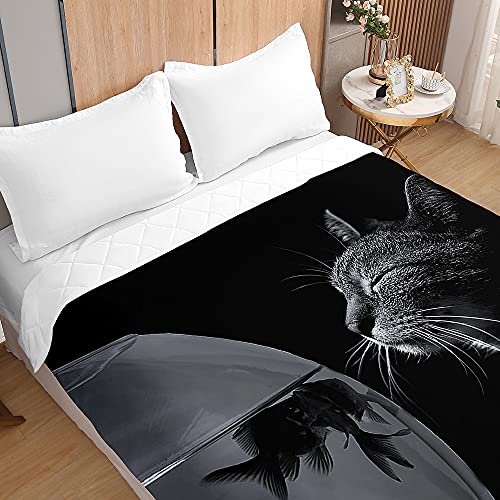 Surwin Trapuntino Copriletto Trapuntato Primaverile Estivo, Trapuntino in Morbida Microfibra Reversibile con Motivo Gatto 3D Leggero Coperta Letto Singolo/Matrimoniale (Pesce Rosso,230x260cm)