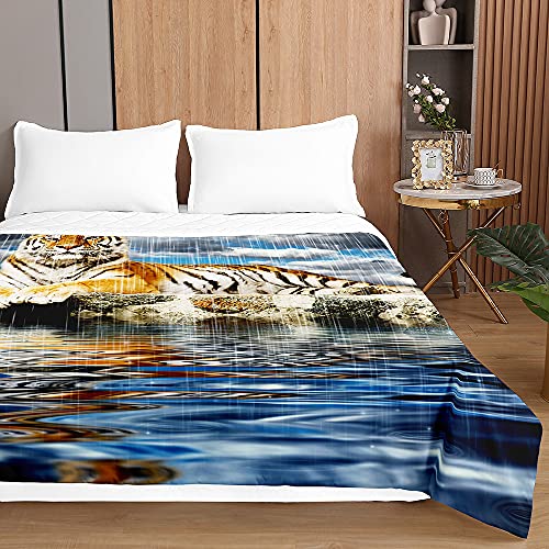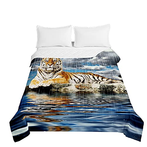 Surwin Trapuntino Copriletto Trapuntato Primaverile Estivo, Stile Moderno, Trapuntino in Morbida Microfibra con Stampa Tigre Leggero Coperta Letto Singolo e Matrimoniale (piovere,150x200cm)
