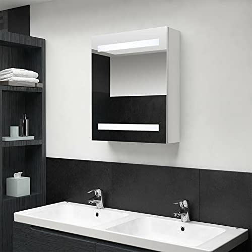 Susany Armadietto Bagno con Specchio e LED, Armadietto da Bagno a Specchio, Specchiera Specchio Bagno Pensile Contenitore Bianco Lucido 50x14x60 cm