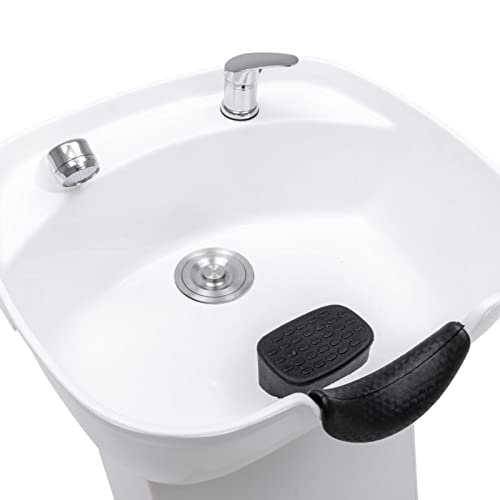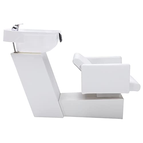 Susany Poltrona e Lavatesta Shampoo per Parrucchiere in Similpelle Bianca e Plastca Nera/Bianca con Ugello Doccia 129x59x82 cm,Poltrona da Parrucchiere con Lavatesta Professionale in Ecopelle