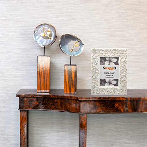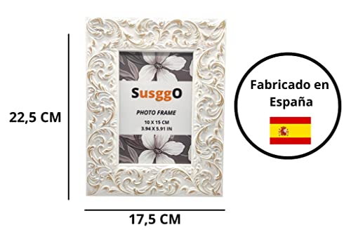 SusggO Cornice per foto - Dimensione foto 10 x 15 cm - fabbricato in Spagna - con supporto e vetro - Legno - Decorazione per la scrivania mobile decorazione casa (bianco decapato Mod 1)