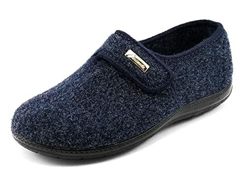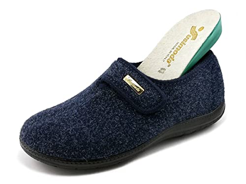 SUSIMODA 644737. Pantofola chiusa in calda lana cotta con chiusura a strappo. Plantare estraibile in pelle con predisposizione a plantare personale. Zeppa leggera di 2,5cm. Made in Italy.