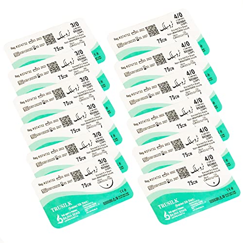 12 fili di sutura in seta di cui 3/0 e 4/0 filo di sutura in seta nera intrecciata ideale per studenti, infermieri Kit di sutura aggiuntivo