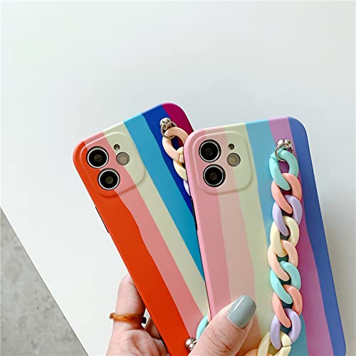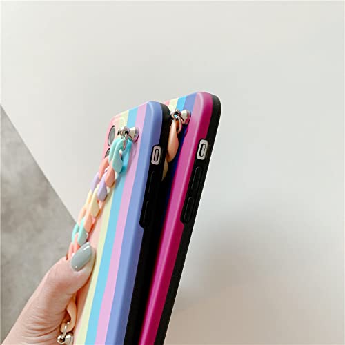SUVATA Custodia per telefono con bracciale arcobaleno per iPhone 13 11 Pro 7 8 Plus X Xr Xs Max 12 Mini SE2 Custodia morbida in silicone con catena da polso a colori sfumati, rosa, per iPhone 11