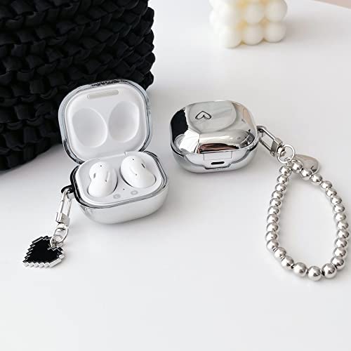Suwegx Custodia per Samsung Galaxy Buds Pro/Buds 2 Pro/Buds 2/Buds Live con portachiavi, elegante guscio protettivo universale elettroplaccato (cuore 02)