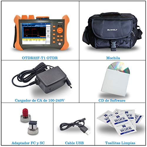 SUWOLF 1310/1550nm 32/30dB OTDR 5.6" Touch Screen 120KM(74,5mi) FTTH Ottico Dominio Del Tempo Reflectometer/Tester Per Fibra Ottica con 10mW Visual Fault Locator(VFL) e Adattatore FC SC