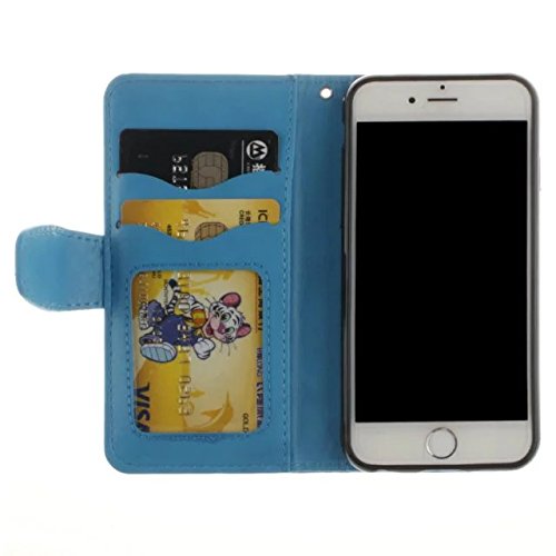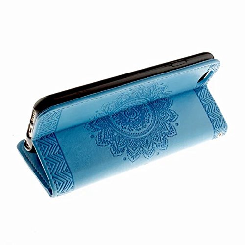 Suzanne Antoinette Per iPhone 7 Plus [Emboss Mandala Datura Flower] Custodia Portafoglio in Pelle PU [Supporto/Slot per schede] con Custodia salvaschermo (Colore: Blu)