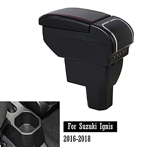 Per Suzuki Ignis 2016 2017 2018 2019 2020 2021 Auto Console Centrale Bracciolo, Doppio Strato in Pelle Poggiabraccio Vano Portaoggetti Box Accessori Interni Nero