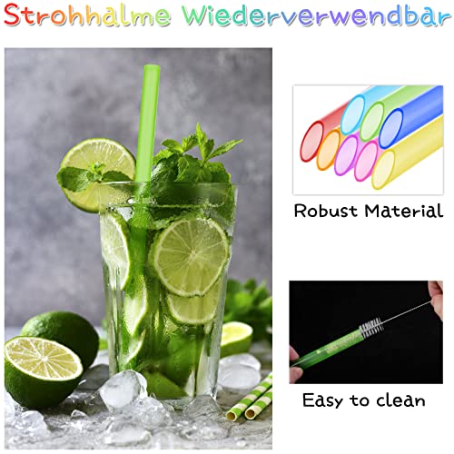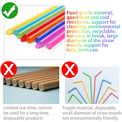 Set di cannucce da tè a bolle: il kit di cannucce da tè a bolle include 8 cannucce colorate da 260 x 10 mm (blu scuro, azzurro, rosso, rosso rosa, verde, arancione, giallo, viola), 2 pennelli bianchi per la pulizia da 26 cm.