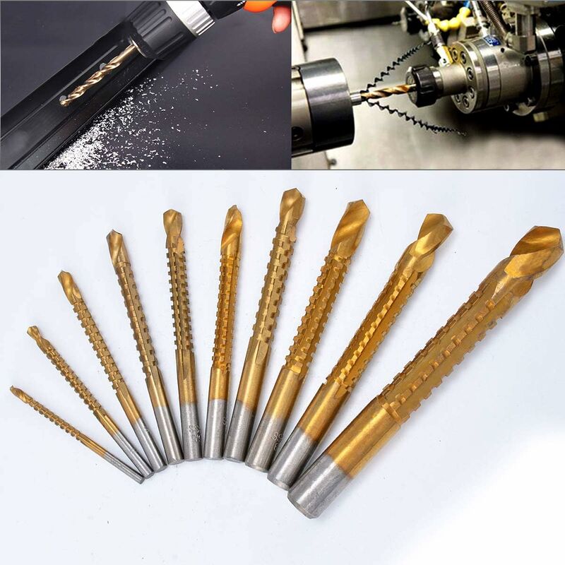 Punte da trapano dimensioni utensili diametro di taglio 3 mm, 4 mm, 5 mm 6 mm 6,5 mm 7 mm 8 mm 9 mm 10 mm 13 mm realizzato con materiale HSS acciaio ad alta velocità con rivestimento in titanio, punte da trapano Tagliente affilato, corpo più veloce con meno sforzo. Questa mini punta da trapano è adatta per legno sottile, perforazione di metalli, scanalature a strappo di lastre di plastica. Utilizzo: punte per sega sulla lavorazione del legno, legno, alluminio, lavorazione di lastre di plastica. Materiale per punte in acciaio ad alta velocità;