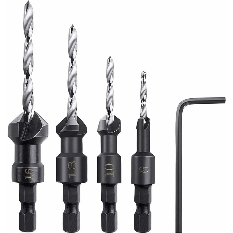 mandrino, ecc. È un must per la falegnameria di tutti i giorni. Robuste e durevoli: le nostre punte da trapano. il legno è realizzato in acciaio HSS, che ha una durezza alta, buona resistenza a usura ed elevata resistenza all'usura. il calore. La punta del trapano è molto adatta per per la foratura di legno, plastica, gomma, PVC e altri materiali. Non è un utensile elettrico e non può essere utilizzato. per oggetti duri come acciaio, ferro e pietra. Lunghezza regolabile: il set di punte coniche HSS include una presa esagonale regolabile, che può essere regolata per allentare e serrare la vite con una chiave;