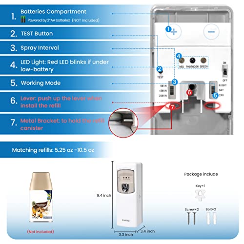 Spruzzatore di profumo a batterie: richiede 2 batterie AA (non incluse) per funzionare per portare fragranza continua e duratura nella tua camera da letto, bagno, soggiorno, camera degli ospiti, ufficio, centro estetico, palestra e così via. Indicatore LED - quando le batterie sono scariche, il LED verde smette di lampeggiare e il LED rosso inizierà a lampeggiare
