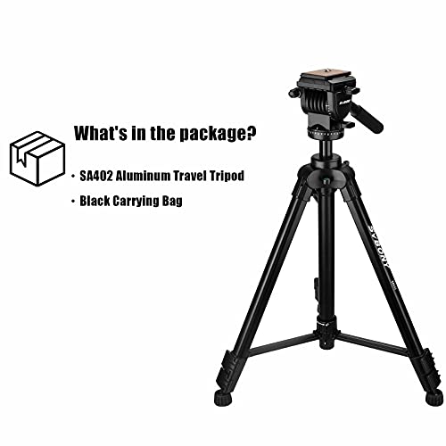 Svbony SA402 Treppiede Fotocamera Testa Fluida in Alluminio, Treppiede Viaggio Professionale con Piastra a Sgancio Rapido, 64,56 in Panoramico 360 Gradi, per Cannocchiali Fotografici Fotocamere Reflex