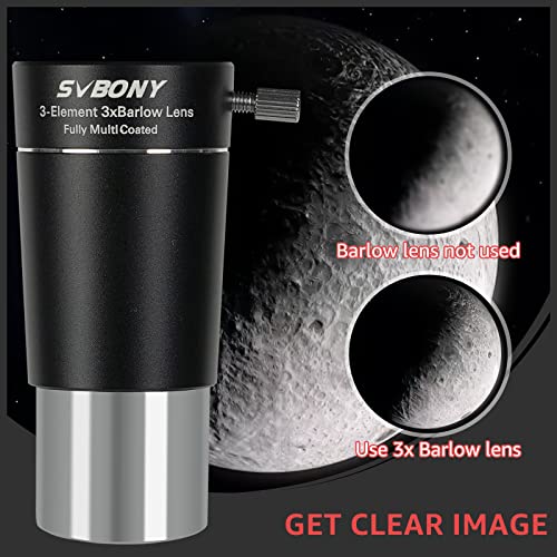 Svbony SV213 Barlow Lente, 3x Barlow 1.25inch FMC 3 Elementi in Metallo Accessori per Telescopio per Fotografia e Osservazione Planetaria