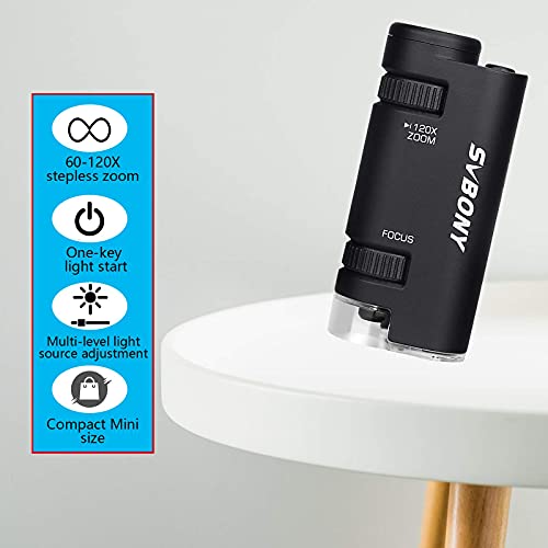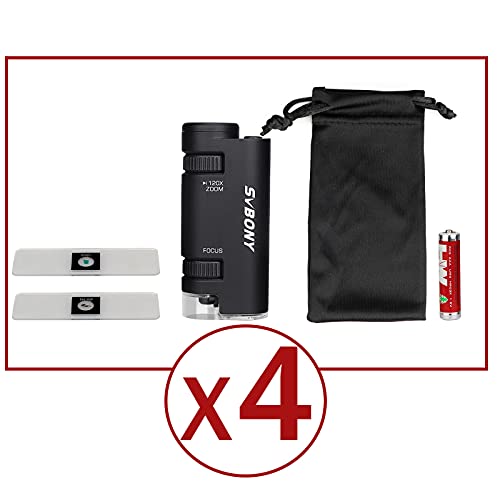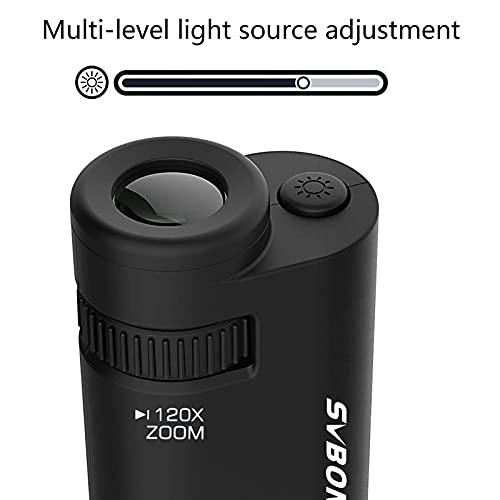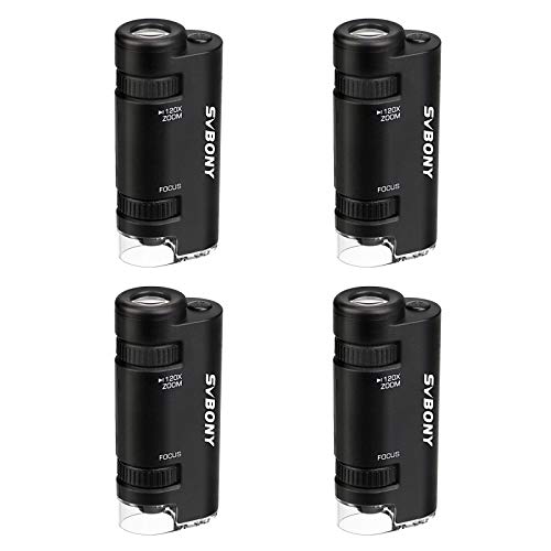Svbony SV603 Microscopio Tascabile Con Luce, Microscopio Portatile Da 4 Pezzi, Microscopio Tascabile Portatile Illuminato 60x-120x Per Micro Osservazione Scientifica All'aperto (Black)