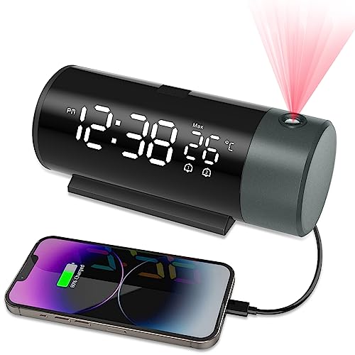 Sveglia da Comodino, Sveglia Digitale da Comodino, Sveglia con Proiettore Soffitto Rotazione di 180°, Orologio Digitale Funzione Snooze, con Sensor de Luz para Ajustar Automáticamente el Brillo