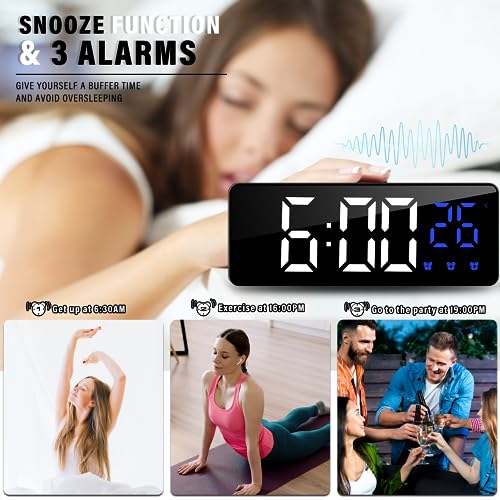 ⏰ Ampio display a LED e funzione snooze: questa sveglia digitale è dotata di un ampio display a LED da 6,7 pollici, che lo rende facile da leggere, corpo ultrasottile, può essere utilizzato anche come specchio;