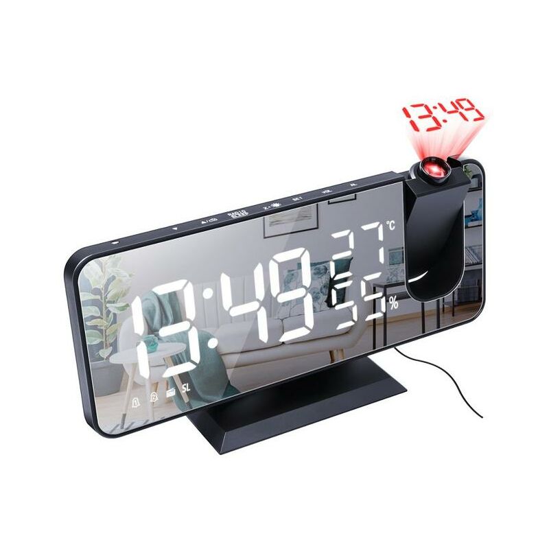 Caratteristiche:Grande Led cifre al tempo di visualizzazione, di umidità e di temperatura facile e comodo per la lettura.Funzione di proiezione: tempo del progetto, messa a fuoco regolabile, 3-livello di luminosità di proiezione, in grado di ruotare la proiezione di 180 °.Automaticamente la luce-regolazione: in questa modalità, la luminosità di proiezione non può regolare automaticamente in base alla inddor luminosità.Funzione radio FM: FM manuale, il listenning tempo può essere impostato, stazione di ricerca automatica.Funzione orologio doppio allarme: 2 di allarme orologi può essere impostato per qualsiasi data separatamente, anche impostare la modalità snooze.Funzione di termometro interno: in tempo reale di visualizzazione della temperatura, 12H/24H modalità.4 livelli di luminosità del display può essere regolato manualmente come avete bisogno.Lo schermo è speciale progredito che può essere utilizzato come un specchio per il trucco.Built-in poteri off funzione di