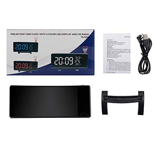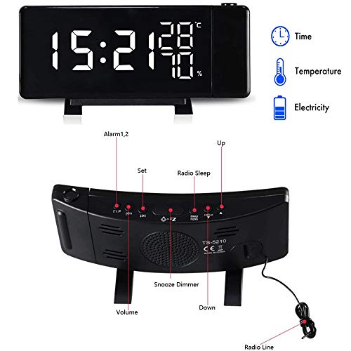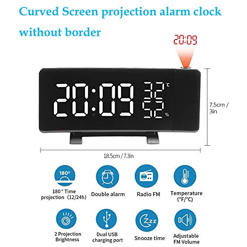 Sveglia Digitale, Radiosveglia con Proiettore, Sveglia da Proiettore Soffitto con FM Radio, Funzione Snooze, Sleep Timer, 2 Porte USB, 3 Livelli Luminosità Proiezione Regolabile 180°