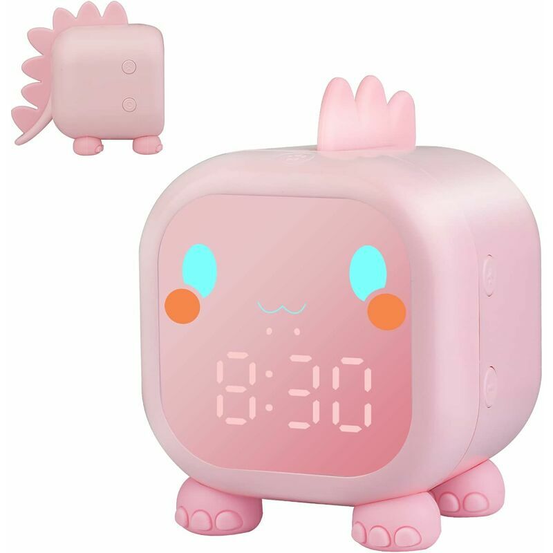 Sveglia regalo per bambini: nuova sveglia alla moda di design per bambini studenti.Utile multifunzione: timer luce notturna, 2 gruppi di allarmi, conto alla rovescia, snooze, controllo vocale, allenamento del sonno, 6 tipi di musica e 5 volumi regolabili, lavoro silenzioso, offrono un ambiente tranquillo per dormire a te e ai tuoi bambini. Anche un buon compagno per gli studenti che studiano con esso. Timer sveglia e funzione conto alla rovescia: luce calda per la notte, puoi impostare quando spegnere la luce, aiutare te o tuo figlio che ha paura del buio a addormentarsi Funzione timer appositamente progettata, funzione di conto alla rovescia da 1 a 59 minuti disponibile per molte occasioni: come: studenti che fanno i compiti, bambini che dormono, cucinano e cuociono al forno, ecc. la luminosità dello schermo può essere regolata in 3 passaggi per adattarsi ai diversi ambienti. La luminosità del display dell'ora può essere regolata in base all'ora del giorno e della notte, per