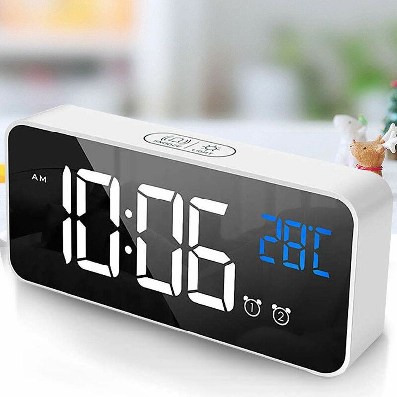 Sveglia digitale multifunzionale - - Ampio schermo con ora, allarmi, temperatura ℃/℉, modalità 12H/24H e indicatore di batteria scarica. Lo schermo LED si accende quando rileva un suono o quando lo tocchi. 【2 sveglie con funzione snooze】 - Puoi impostare 2 sveglie in un giorno per pianificare il tuo tempo in modo appropriato. Entrambi gli allarmi hanno un interruttore indipendente facile da impostare. La funzione snooze consente altri 5 minuti di sonno. Sono disponibili 13 diversi suoni musicali. 【Luminosità regolabile】 - Durante il processo di ricarica, lo schermo LED si accende sempre e regola automaticamente la luminosità in 3 livelli per diversi periodi di tempo. Puoi anche regolare manualmente la luminosità in 4 livelli. L'ampio display digitale a LED offre un'impressione visiva chiara e confortevole. 【Doppia alimentazione】 - Puoi caricare la sveglia digitale in qualsiasi momento tramite la comoda porta USB. La batteria agli ioni di litio (inclusa) con funzione di memoria che