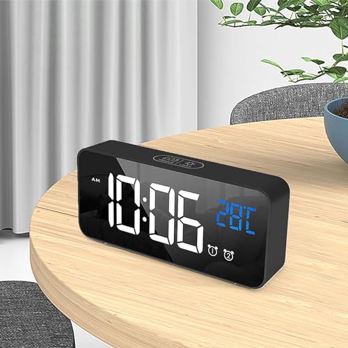 WDEC Sveglia Digitale con LED Temperatura Display Orologio, 2 Sveglie, Snooze, 13 Suoni di Allarme Porta, Suoni eRegolabile, Ricarica USB, 4 Livelli di Luminosità Regolabile, Controllo Vocale (nero)
