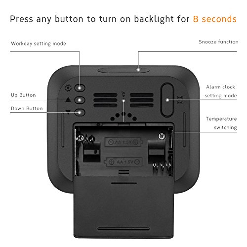 Sveglia Digitale da Viaggio,VADIV CL07 Orologio Digitale Funzione,Sveglia Portatile,Display a LCD Tempo Data Temperatura Funzione Snooze per Adulti, Bambini Nero