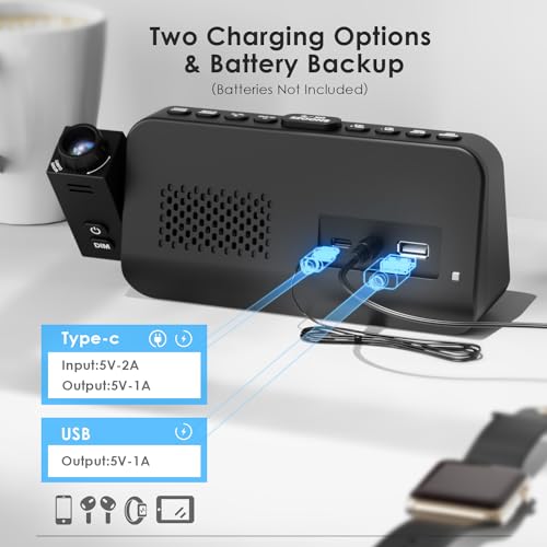 【Funzione di memoria e doppio caricatore USB】Questo orologio proiettore è dotato di una porta di ricarica Type-C e USB per caricare comodamente il telefono mentre si dorme, contribuendo a ridurre