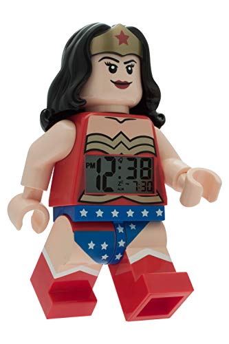 Lego Sveglia retroilluminata 9009877 DC Comics Super Heroes per bambini con minifigure Wonder Woman | blu/rosso | plastica | altezza: 24 cm circa | Display LCD | bambino/bambina | ufficiale