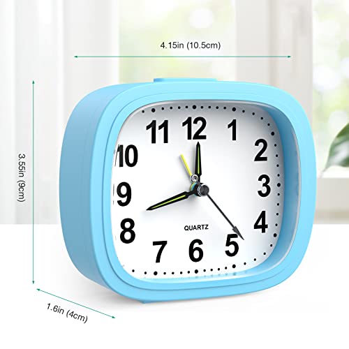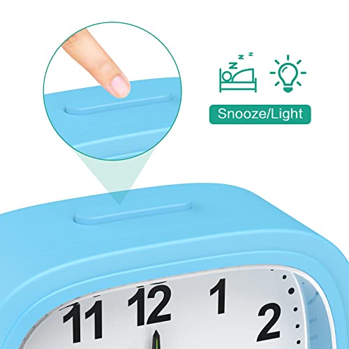 ORIA Sveglia Silenziosa, Orologi da Comodino Senza Ticchettio con Ampio Display, Funzione Snooze e Luce Notturna, Facile da Leggere (Alimentato da Batteria 1AA, Non Inclusa) - Blu