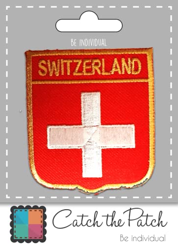 Svizzera bandiera - Toppe termoadesive Patch Toppa ricamate, misura: 6,3 x 7,3 cm