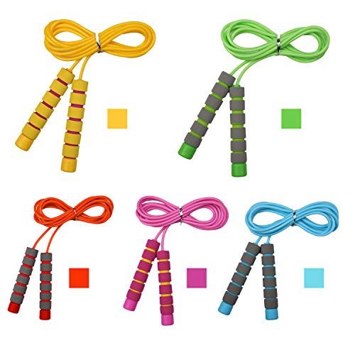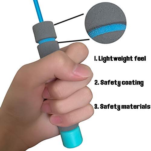 【MATERIALI SANITARI E AMBIENTALI AMICI】 -Svkiyang 2 Pack manico in corda per saltare è realizzato in materiale polietilene ecologico e spugna morbida, la corda è in materiale PVC resistente all'abrasione da 4,5 mm, fornendo allo stesso tempo alta qualità per garantire che non ci sia potenziale danno al bambino.