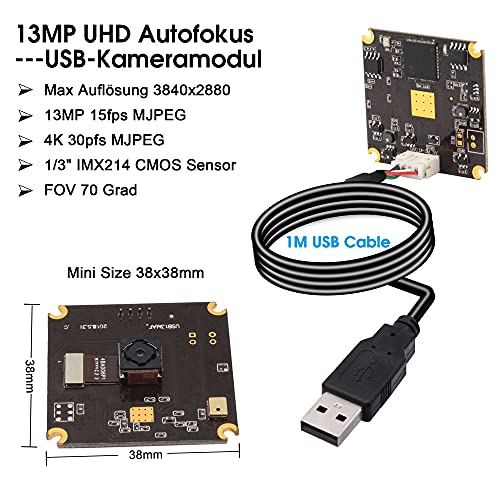 Svpro 13MP Autofocus USB Camera con microfono, HD Camera Module per computer, Machine Vision Camera IMX214 CMOS Sensor UVC Video Camera con 1m di cavo per Laptop, Raspberry Pi, Jetson Nano