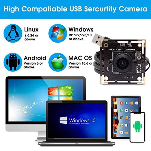 Altamente compatibile: il modulo scheda USB Driverless da 2 megapixel con cavo USB 2.0 è molto facile da configurare solo Plug & Play, funziona con Windows XP/Vista/Win 7/8/10, Linux, Mac e sistemi Android, supporta anche il protocollo OTG. Questo modulo fotocamera è ideale per progetti di robotica, registrazione video di progetti, monitoraggio HD, monitoraggio delle posizioni, monitoraggio ambientale