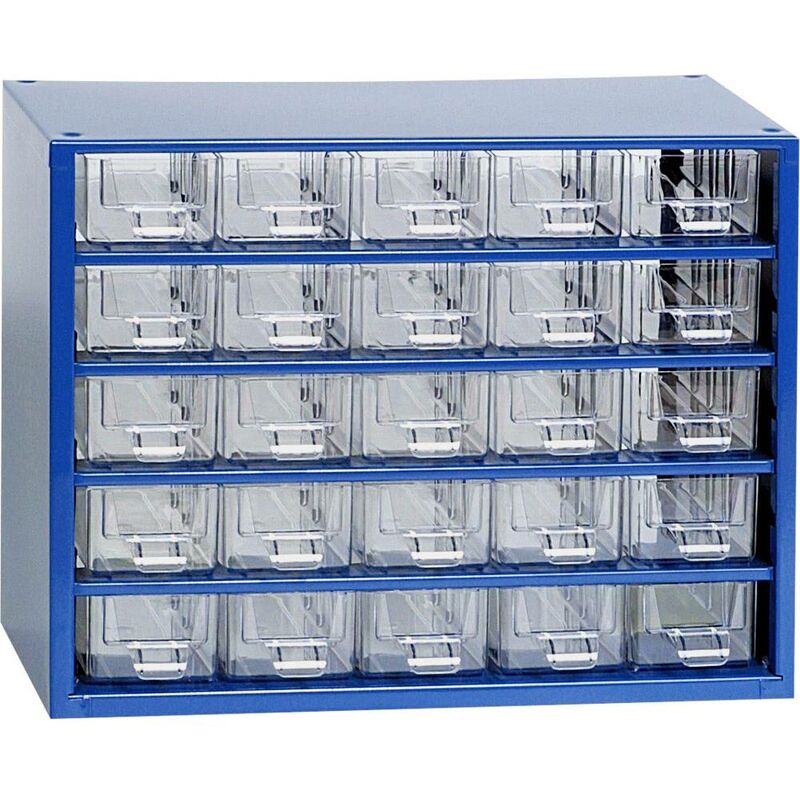 Dettagli tecnici Caratteristiche componenti suddivisione fissa Colore Blu, Trasparente Dimensione del prodotto, larghezza 306 mm Dimensione, profondità 155 mm Dimensioni (L x A x P) 306 x 238 x 155 mm Dimensioni prodotto Altezza 238 mm Famiglia colore Blu, trasparente Materiale Metallo, Plastica Scomparti 25 Tipo prodotto Cassettiera porta minuteria Caratteristiche Verniciato Con telaio in metallo Con cassetti in plastica trasparente. Testo tradotto automaticamente. Incluso nella consegna null Requisiti di sistema null