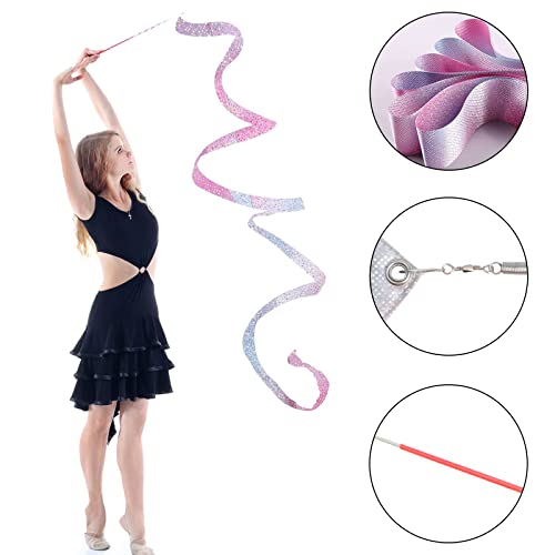 SVUPUE Nastri di Ballo, 4 Pezzi Nastro per Ginnastica Ritmica, 2 M Lungo, Adatto per l'allenamento di Danza, Ginnastica, Formazione, Glitter Rosa Blu