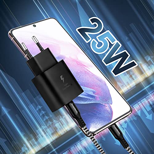 Swadaws Caricatore USB C 25 W con 2M Cavo Ricarica Caricabatterie Compatibile con Samsung Galaxy S21 Ultra/S21 FE/S20/S10/S9/Note 20 Plus/A52/A72, iPad Pro/Air/Mini (Nero, 2 pezzi)