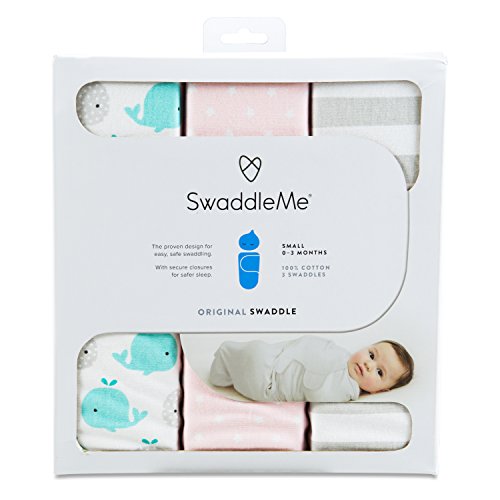 SwaddleMe-Copertina per fasciare, piccola, a forma di balena, colore: rosa e Grigio a righe, confezione da 3 pezzi