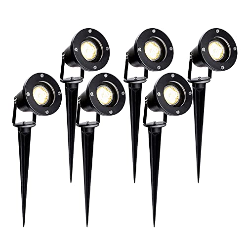SWANEW 6 Pezzi Faretti da Giardino 4W GU10 luce decorativa Bianco Caldo per giardino, IP65 Impermeabile Lampada Luci da Giardino con Picchetto, Luce per Giardino Esterna Backyards Prato Parete