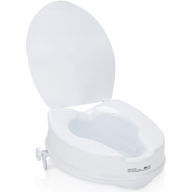 Universale:Il rialzo per il sedile del wc colpisce per il suo design minimalista ed è compatibile con la maggior parte dei wc rettangolari o ovali presenti sul mercato. È adatto a toilette con una lunghezza di 280 mm e una larghezza fino a 220 mm. Vi consigliamo di verificare le dimensioni della vostra toilette prima di acquistare un rialzo per il sedile del wc. Questo rialzo per sedile del WC è facile da assemblare e si installa rapidamente e facilmente senza attrezzi. Posizionare il rialzo del sedile della toilette sulla toilette e ruotarlo in posizione con le due clip di fissaggio laterali. Inoltre, una volta installato, è sicuro e stabile e non traballa o si sposta facilmente. Il rialzo del sedile del wc da 10 cm: Il rialzo del sedile del wc è progettato per migliorare il comfort dell'utente. Ha un design leggermente inclinato in avanti che riduce la pressione sulle anche e sulle ginocchia dell'utente. È adatto a persone con dolori all'anca o al ginocchio e a persone con mobilità