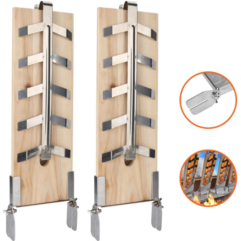 Le tavole in legno di cedro non trattato sono pensate per la preparazione tradizionale dei filetti di salmone. Per fare ciò, il pesce condito viene fissato sulla tavola di legno utilizzando il morsetto in acciaio inossidabile. Quindi fissare la tavola per salmone utilizzando la staffa al bordo del barbecue o del braciere. Utilizzare subito il tagliere per salmone flambé come tagliere per presentare i pesci aromatici. Nota: prima del primo utilizzo, strofinare il tagliere di legno non trattato con olio commestibile. L'irrigazione del tagliere per salmone è necessaria solo se non riesci a mantenere la distanza di circa 20 cm tra il pesce e il fuoco. I taglieri per salmone fiammano il salmone in dettaglio < p> Totale H x L x P: ca. 5,5 x 56 x 21 cm Tavola H x L x P: ca. 1,5 x 46 x 15,5 cm Porta slot H x L: ca. 4,5 x 0,4 cm Angolo: 180°, 135°, 90°, 45° e 0° (parallelo alla griglia di cottura) Materiale: legno di cedro, acciaio inossidabile Taglieri tradizionali Tagliere per salmone